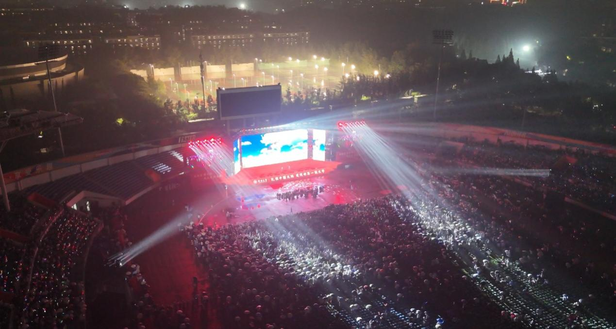9月26日晚,必赢76net线路官网2025年庆国庆暨迎新生文艺晚会在主校区本源体育场举行。校党委副书记王利国出席,相关职能部门和学院负责同志,一万余名2025级新生欢聚一堂,在雨幕中共赴这场充满活力的青春之约。