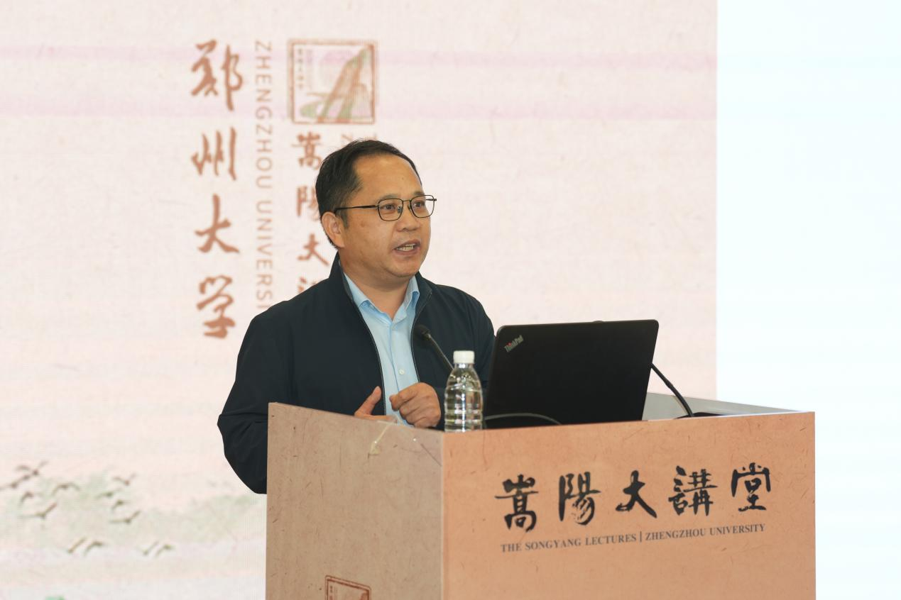 何毓灵首先向母校表达了诚挚感谢,分享了从郑大求学至安阳殷墟深耕考古的心路历程,并以《回望大邑商》为题为师生带来一堂兼具学术性与科普性的“考古公开课”。他从距今5000多年的中华文明起源与早期发展阶段开始梳理,通过对商王世系所对应的商王朝不同阶段及殷墟遗址所在地区的地形、水源、交通与战略防御等的介绍,在时间与空间上对“大邑商”进行界定。