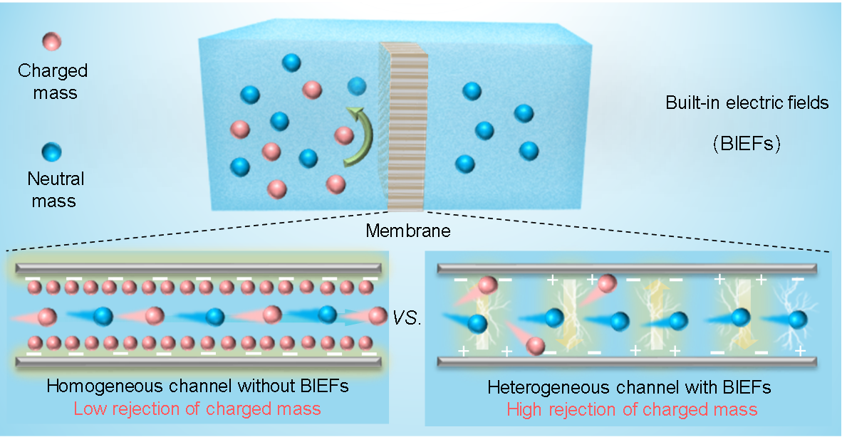 内建电场主导的高效荷电物质截留