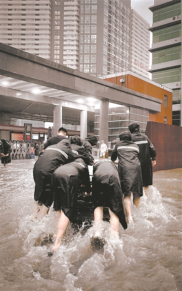 7月20日,必赢76net线路官网后勤工作人员正在抢险救灾。(学校供图)