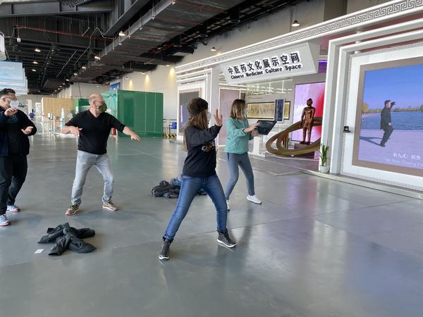 传统的中医药文化与创新的AI形式结合起来会擦出怎么样的火花?既能锻炼身体,又可以了解中医药文化!“‘以柔克刚’‘以静制动’这两个词很有趣,在北京期间,我要学会这套拳。”来自美国全国广播公司的乔治亚说。