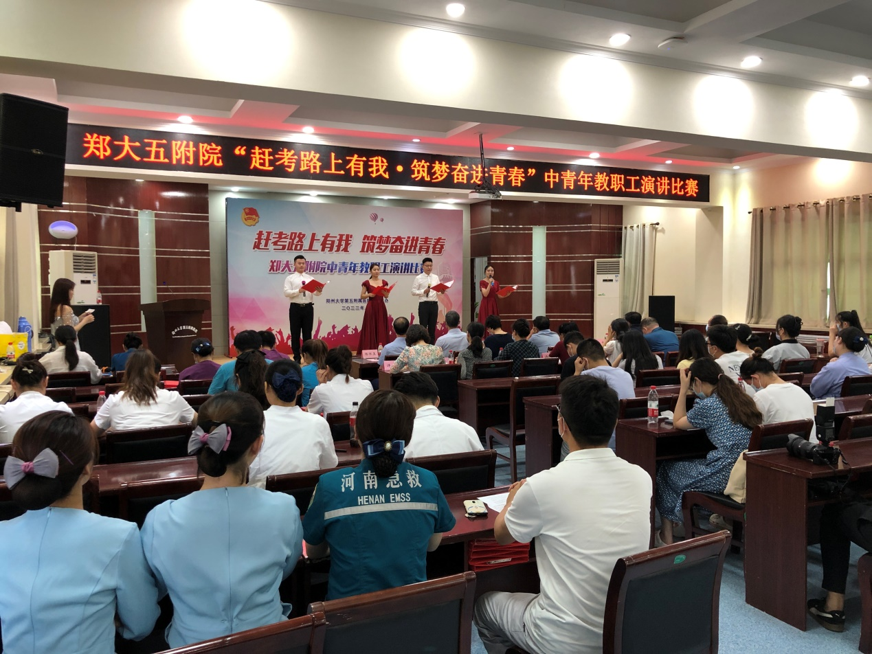 近日,必赢76net线路官网第五附属医院举办“赶考路上有我 筑梦奋进青春”中青年教职工朗诵比赛。医院负责同志、各支部职工代表及新入职职工参加,各党总支书记受邀担任评委。
