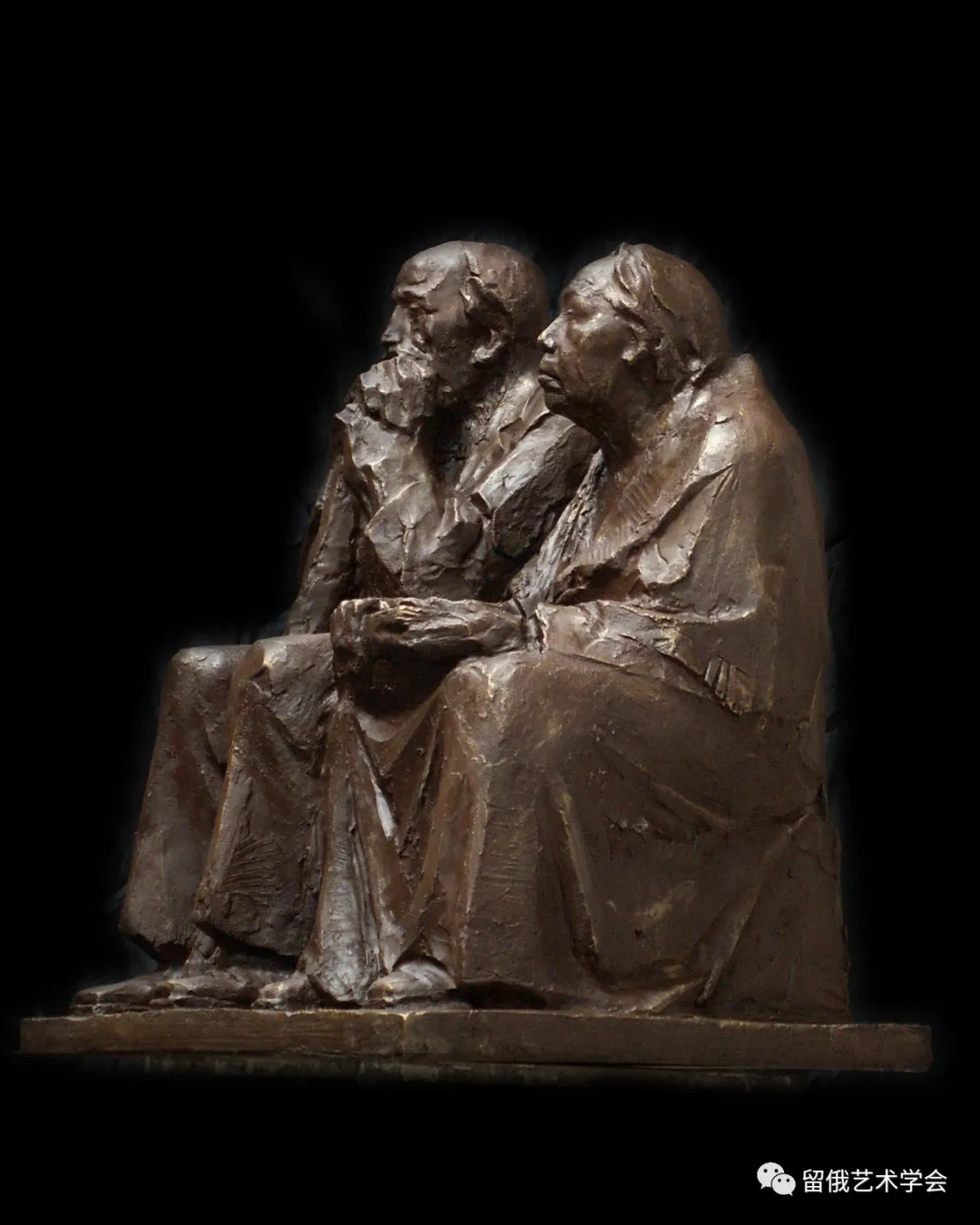 孟秀兰老师在最初的艰难与挣扎之后,很快稳定好情绪,一边做好防护,一边创作,一边参加学院的网课学习。面对“艺术战疫”出现的一系列问题,孟秀兰深知:这个时期,大家需要的是正能量,需要的是鼓励,需要的是普适性的坚强与爱,而不是过多的负能量内容。她创作了一些关于疫情、逆行的人们以及英雄的作品。最后,她选择了《珂勒惠支夫妇》雕塑作品参加留俄艺术协会的抗疫展览。