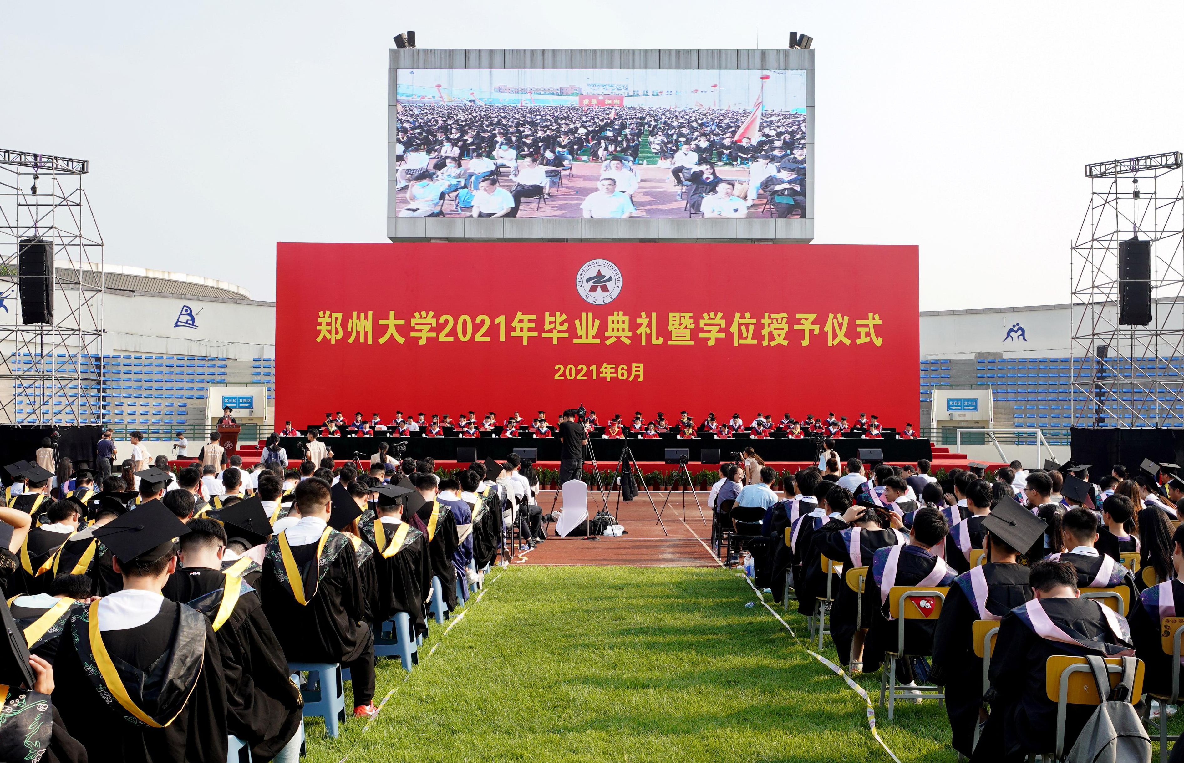 荷叶亭亭绿满塘,累累硕果满枝香。6月28日清晨,迎着初升的太阳、沐浴着清爽的晨风,必赢76net线路官网1.8万余名毕业生身着学位服在体育场上有序就坐,一个个充满着收获的喜悦,共同见证完成学业的美好而庄严的时刻。 “从党史学习中汲取奋进力量,让青春在奋斗中绽放绚丽之花。”体育场四周的墙上张贴的一个个大红条幅,若如师长们一句句语重心长的教诲。“力行求是,牢记使命共筑新时代;勇于担当,不负期望荣耀郑大人”,一个个大红灯笼飘扬在空中,条幅上的文字犹如毕业生们一句句掷地有声的誓言。毕业季恰逢建党百年,必赢76net线路官网2021年毕业典礼暨学位授予仪式隆重举行。