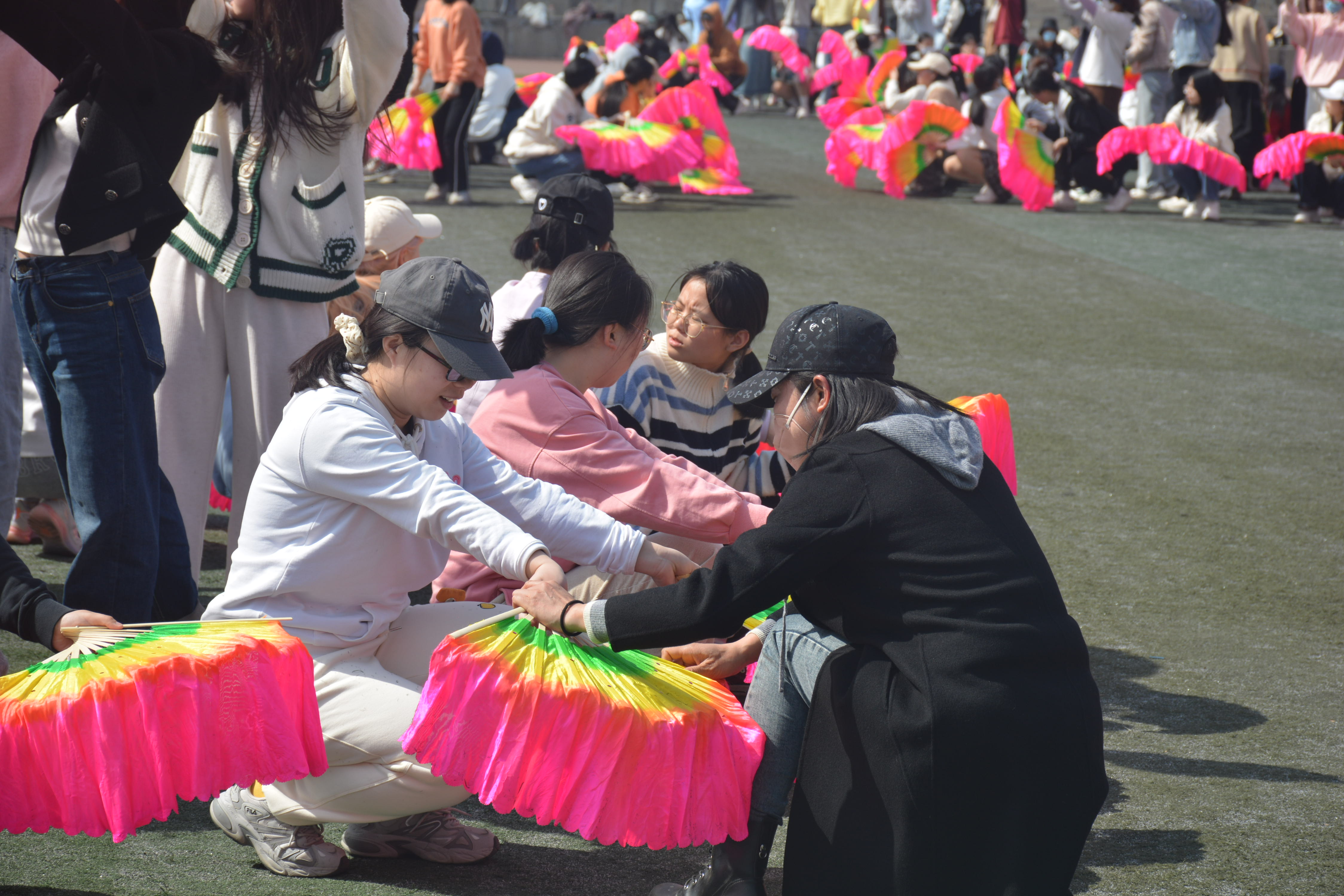 蓝天白云下,学生们脸上挂着明媚的笑容,朝向队伍中央参演的郭华、冯艳玲等老师走来。冯艳玲老师笑着说:“我会担心总觉得有点小遗憾,哪里可以走得更快一点,队形排得更好一点,但效果非常好!当我们与学生一起随心摇摆时,氛围特别欢乐,真正地感到运动会就要来啦!”表演讲求的就是一个饱满的精神状态,看到最后,指导团队的老师也松了一口气。“整体效果非常好!我们的训练效果得到完美呈现!”