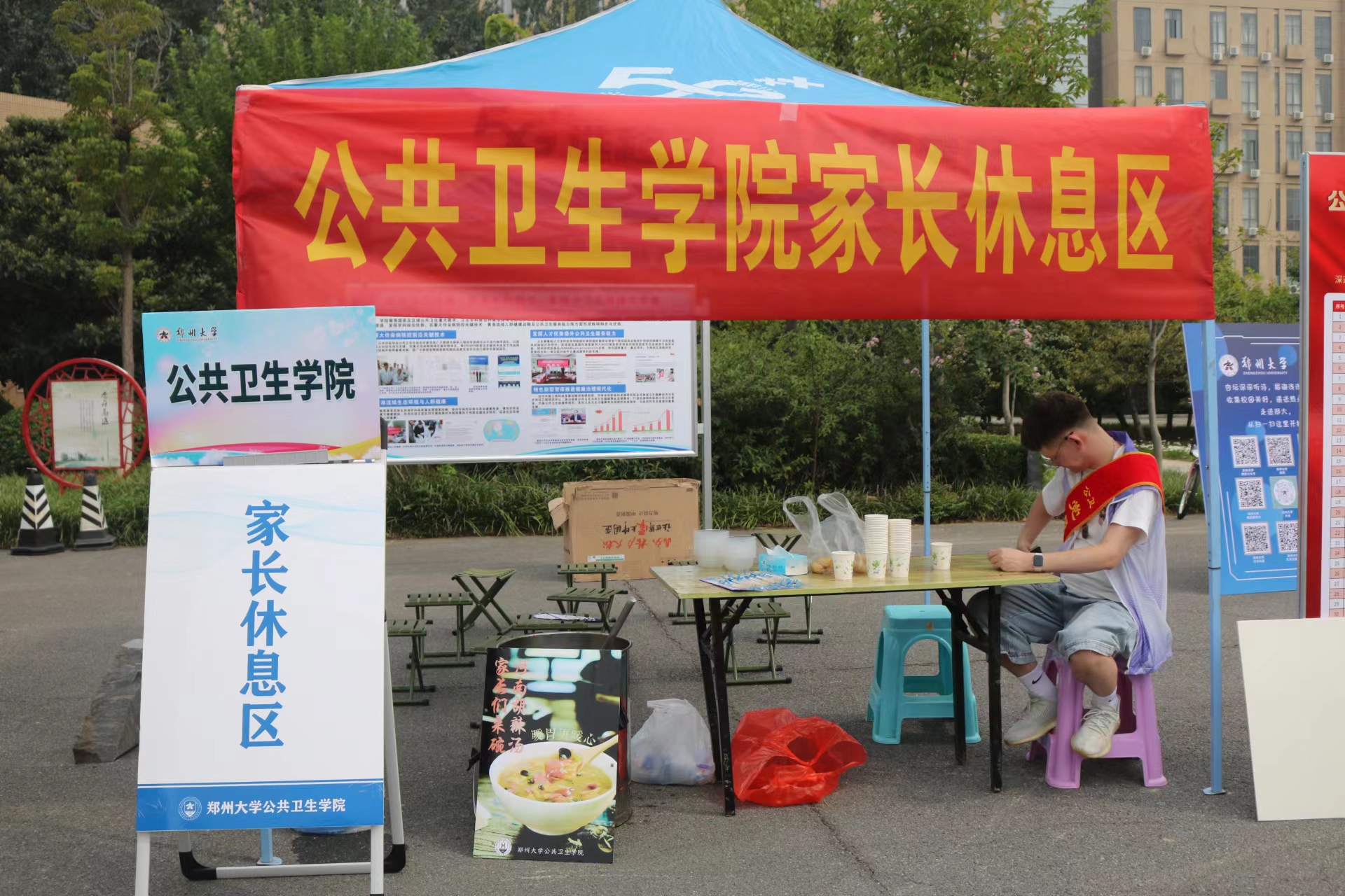 一些学院专门为家长提供休息区,公共卫生学院上午为新生及家长准备了胡辣汤、油馍头,下午准备绿豆汤解暑。迎新点处,新生家长喝着胡辣汤感慨学校“实在”。