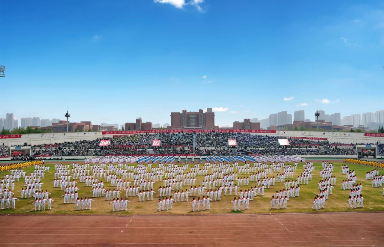 一年一度的校运会已经圆满落幕,翘首以盼的开幕式,以超出预期的惊喜带来了空前的视听体验,精彩纷呈、惊喜连连。记忆尤其深刻的,是师生共同努力精心准备的大型团体操表演。400余名男生带来的武术表演《龙武传承》、450余名学生呈现的跆拳道表演《坚韧不拔》、300余名女生展示的柔力球表演《凝心聚力》、800余名女教职工带来的健美操表演《灼灼芳华》轮番登场,为观众带来一场视觉盛宴。气势磅礴的宏大场面、整齐划一的一招一式、设计新颖的造型变换,赢得阵阵掌声,欢呼与赞美之声响彻云霄。