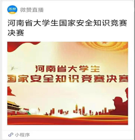 同学们可通过手机观看直播,微信搜索“微赞直播”小程序,进入小程序内搜索“河南省大学生国家安全知识竞赛决赛”即可进行观看。